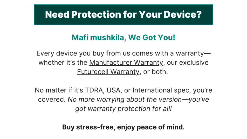 With Savvy’s Club, you get a 1-year Futurecell warranty on all mobile phones and computers, along with manufacturers warranty. regardless of the version. Go ahead—grab that deal without stressing over, “What if my phone…?”